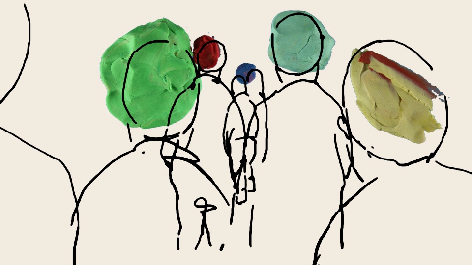 This exciting animation short film combining different techniques is devoted to the visualization of sound. A colour spot suddenly appears in a graphic sketch; it travels through the worlds and eventually transforms into a ball boys play football with on a green lawn. Soon it is the sound which fills the black-and-white palette with vivid colours.