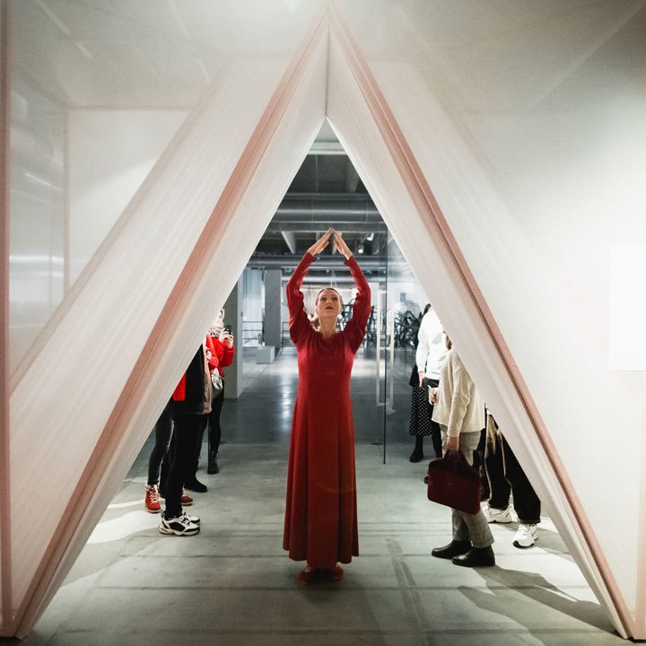 The performance consists of two parts. The first will be presented on the opening day in the exhibition space, where Martje Brandsma will bring her movements into dialogue with the Museum. The second part will be an evening performance presented in spring. Both parts of the performance were commissioned by Garage Museum of Contemporary Art.