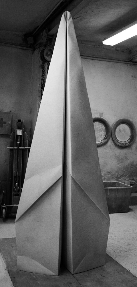 Working exclusively with Carrara marble – a tradition that spans the history of Italian sculpture – Viale works his medium to take on the character of other materials, so marble instead resembles Styrofoam, paper and rubber. To further the illusion, some of Viale’s works carry distinct odors, characteristic of the materials that they mimic – his automobile tires, twisted into a sign of infinity, have a distinct smell of rubber.