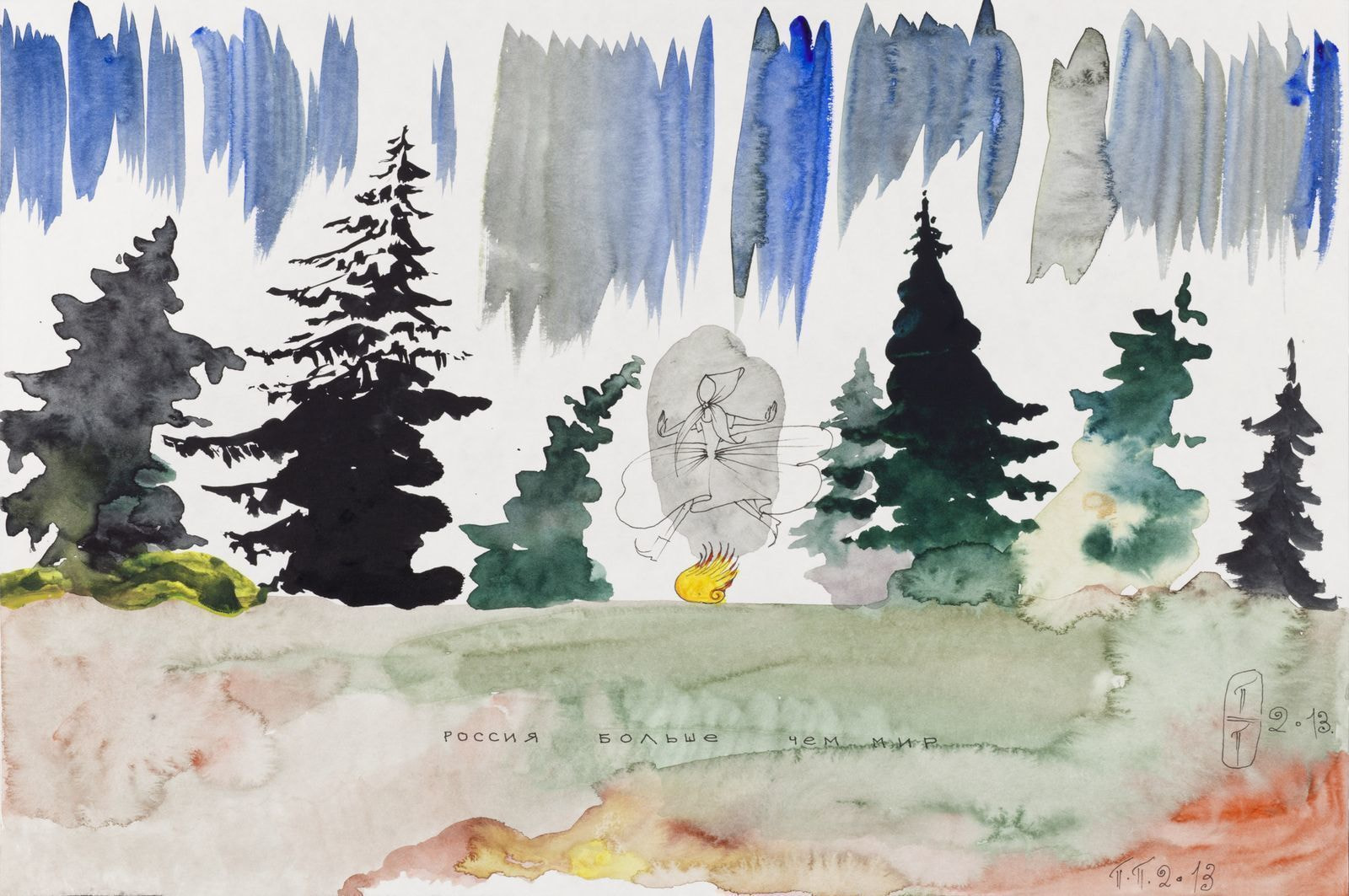 Pavel Pepperstein (b.1966 in Moscow) graduated from The Academy of Fine Arts, Prague in 1987. The son of the famous artist Viktor Pivovarov and poet Irina Pivovarova, he joined the Moscow Conceptualist circle as an original author and leader of a number of novel initiatives. In the late 1980s, Pepperstein formed the Inspection Medical Hermeneutics group and began exhibiting in Russia, as well as Europe. Since early 1990s, he has published essays on contemporary art issues, and has written several books, including the iconic Mifogennaya Lubov Kast (Mythogenic Love of Castes, two volumes, 1999 and 2002, with co-author Sergey Anufriev) and Tolkovanie Snovidenij (The Interpretation of Dreams, 2005, together with Viktor Mazin). Pepperstein’s artworks are in major museum—The State Russian Museum, The State Tretyakov Gallery—and private collections, while the artist travels extensively across Russia and Europe. One of his most critically acclaimed projects was City of Russia (2007–2008), exhibited at Moscow’s Regina Gallery. Author and theorist of “psychedelic realism”, Pepperstein shares left-wing political views, entailing the critique of capitalism and aestheticization of politics.