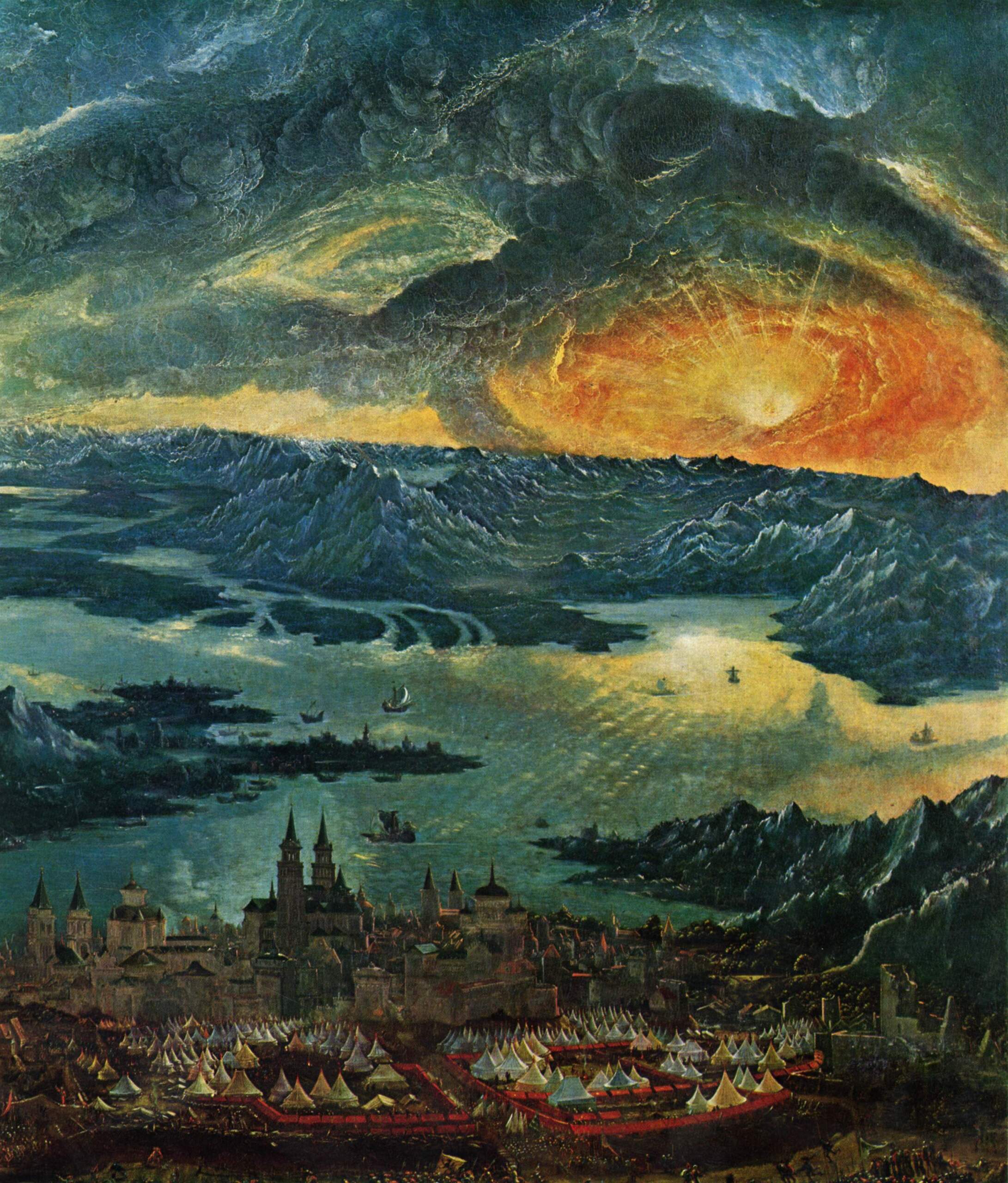 1. Albrecht Altdorfer. The Battle of Alexander at Issus. 1529. Oil on panel. 158 х 120 cm. Alte Pinakothek, Munich