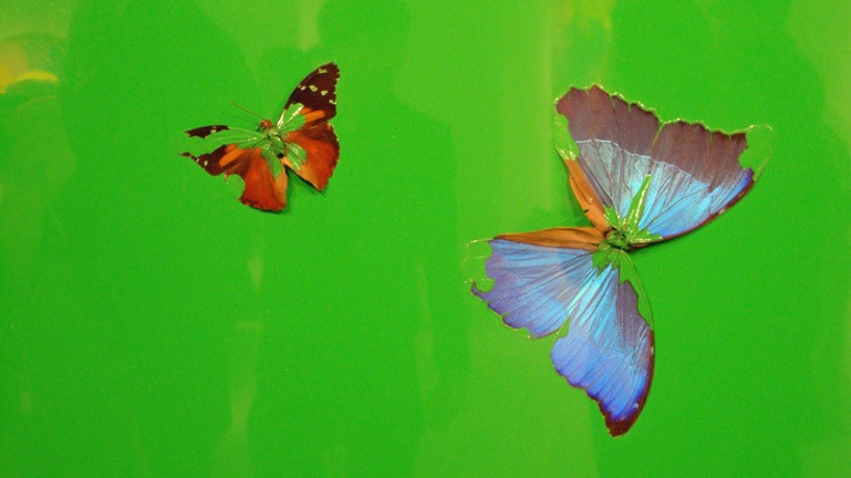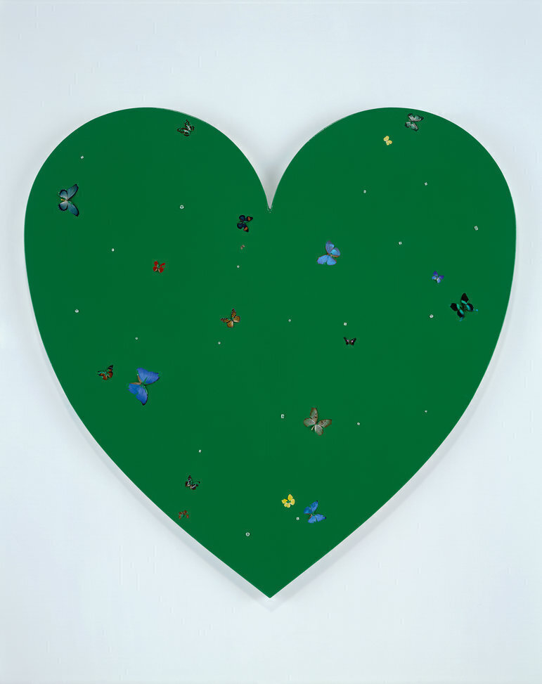 6. Damien Hirst. Detail of butterflies on household gloss paint in "Love-In". 2008. Butterflies, cubic zirconia and household gloss on canvas. 214 x 214 cm