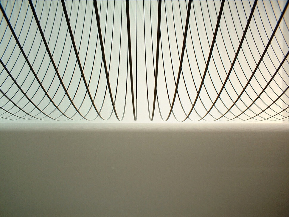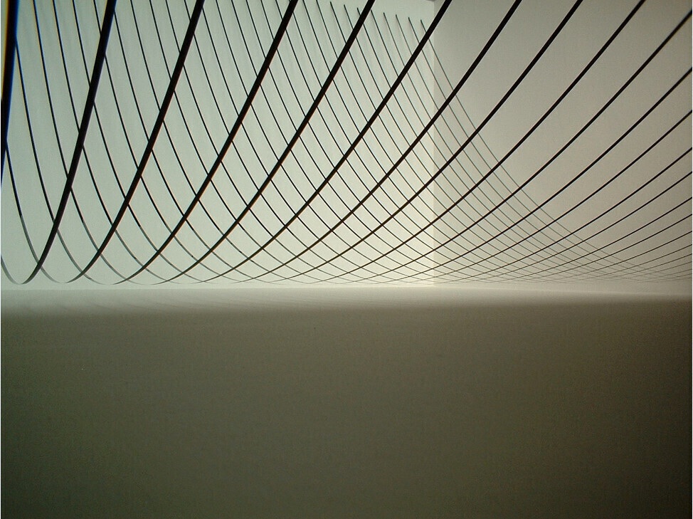 The project Still, created by the artist for the Garage Center, is an installation consisting of countless strands of magnetic film. Hung around the perimeter of the hall, they form a gigantic composition of parabolic lines.