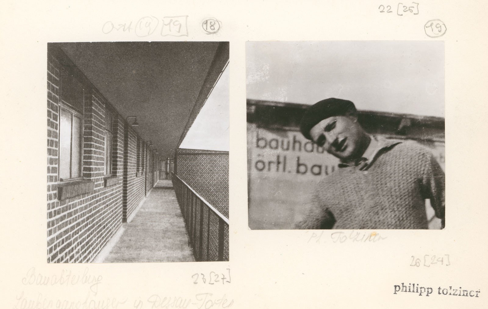 Дома с крытыми галереями в поселке Дессау-Тёртен и портрет Филиппа Тольцинера. Около 1929–1930