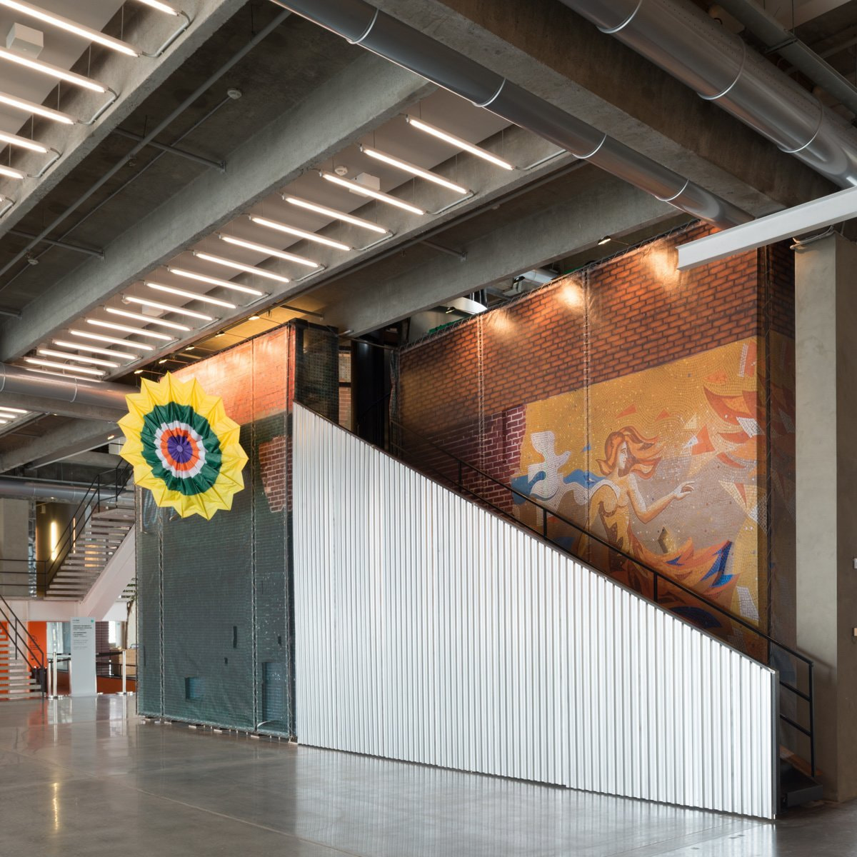 Opened in conjunction with the first Garage Triennial of Russian Contemporary Art, the Atrium Commission explores the contradictions, humor, and pathos of national and cultural identity. In describing the concept of The Tail Wags the Comet—the largest work the artist has made to date—Korina says: “It is about the frustration of longing for something you will never see or achieve and the notion of a desired future that is met with nothing but mundane reality.”