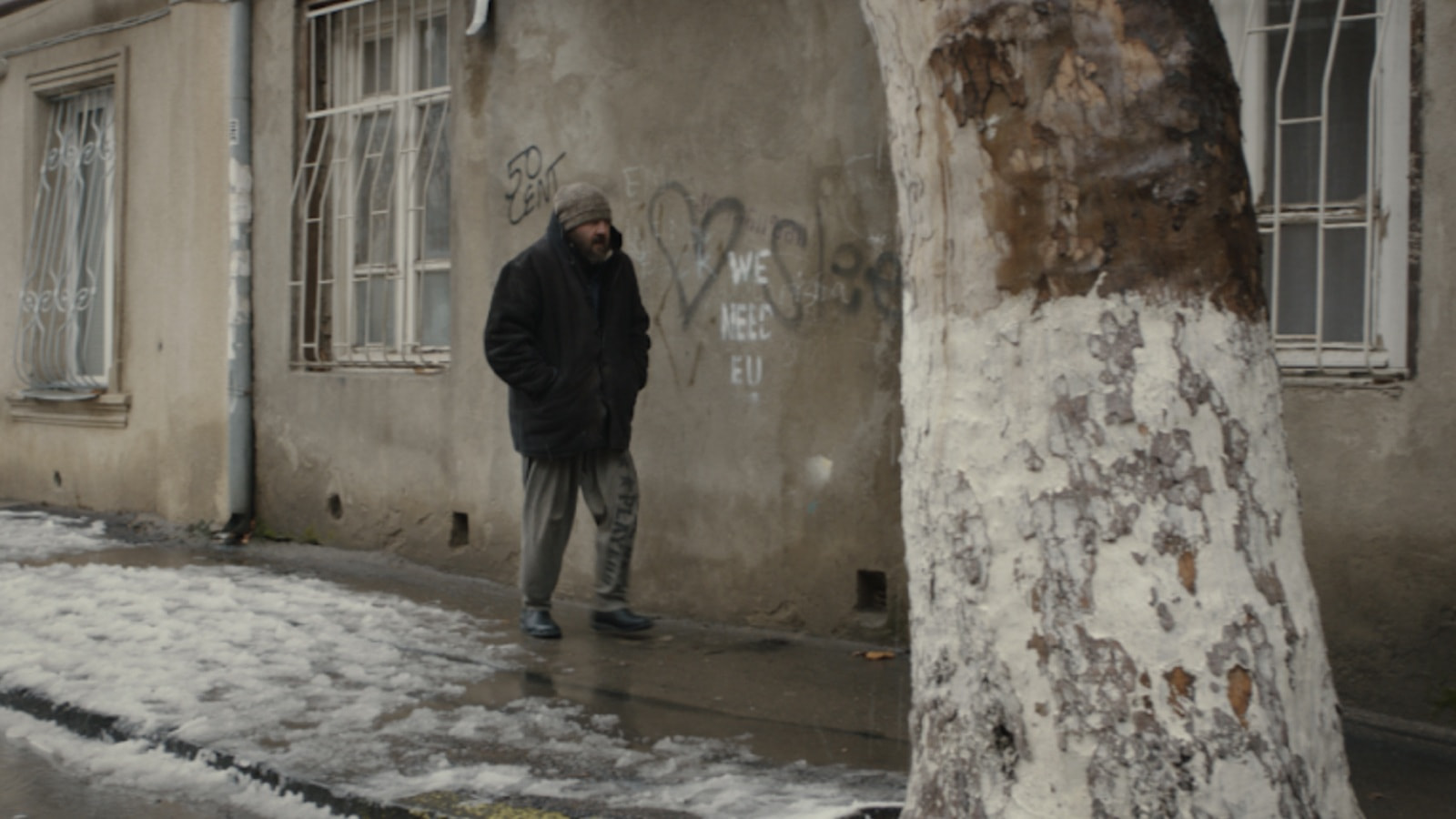 «Снег в моем дворе» — первый за девять лет фильм Бакура Бакурадзе, одного из представителей так называемых «новых тихих» — режиссеров, чей творческий расцвет пришелся на нулевые. А еще это первый фильм, который Бакурадзе снял на исторической родине, о чем всегда мечтал. В картине не происходит никаких остросюжетных поворотов. Гиви отправляется в путешествие в Тбилиси, чтобы поразмыслить над творческими планами и продать ненужную ему грузинскую квартиру. Леван вместе с приятелем подворовывает автомобильные шины, чтобы заработать хоть какие-то деньги и купить корм собакам. Но весь фильм пропитан большой режиссерской нежностью к своим хрупким героям, каждый из которых застрял в печальной рутине, однако всем сердцем, порой того не осознавая, желает из нее вырваться. Мир каждого из нас, пусть и незаметный для глаз другого, состоит из множества значимых деталей. Размышлением об этом, как теплым и уютным одеялом, кино Бакурадзе укрывает своего зрителя.