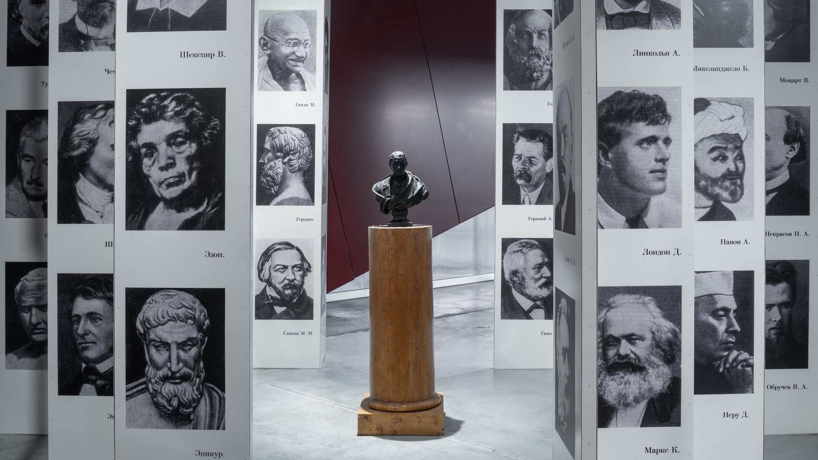 Художник Ян Гинзбург создал для выставки «Секретики: копание в советском андерграунде. 1966–1985» инсталляцию «Комната гениев» — вариацию «доски почета», на которой будут собраны портреты мыслителей и политиков, считавшихся в официальной культуре СССР носителями мудрости и истинного знания.
