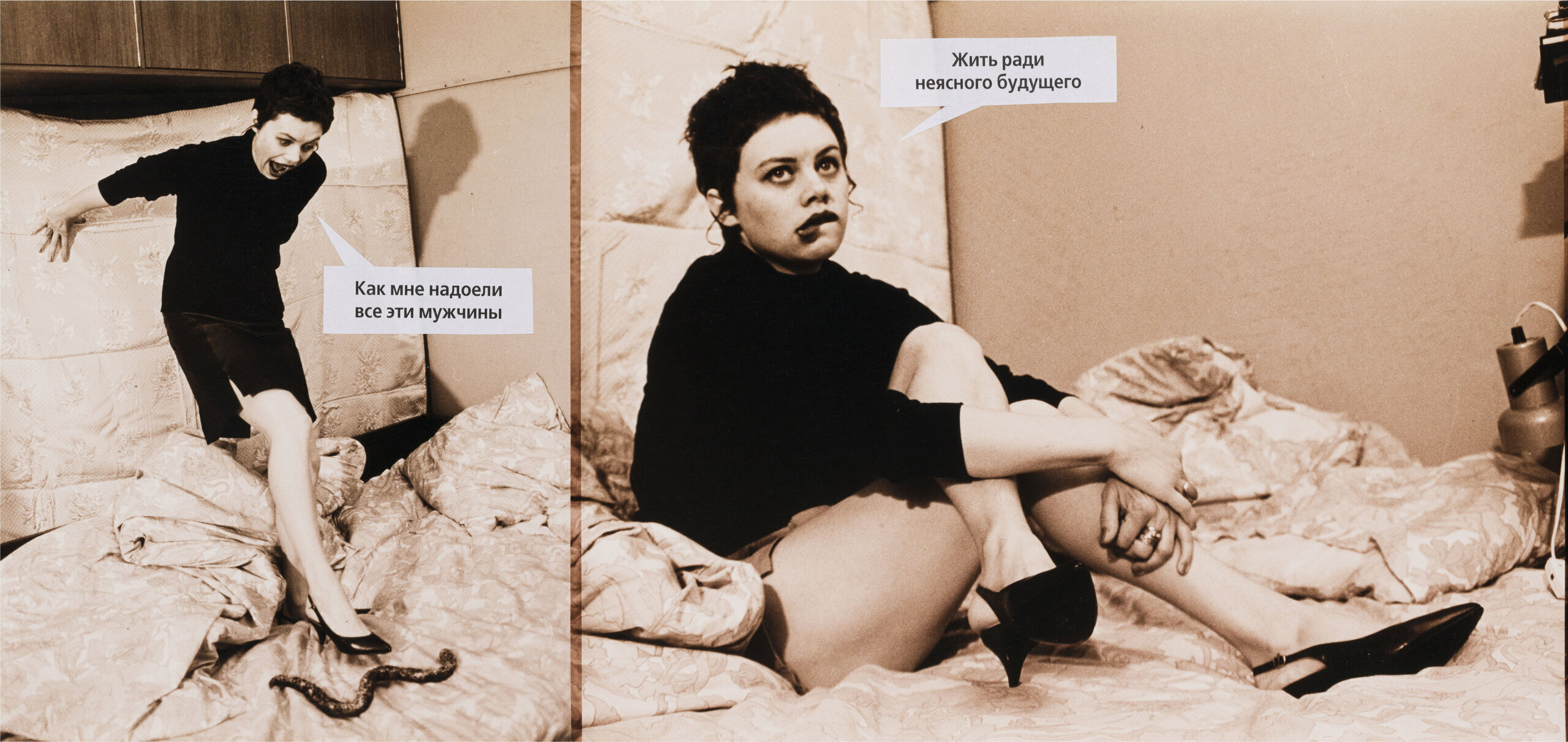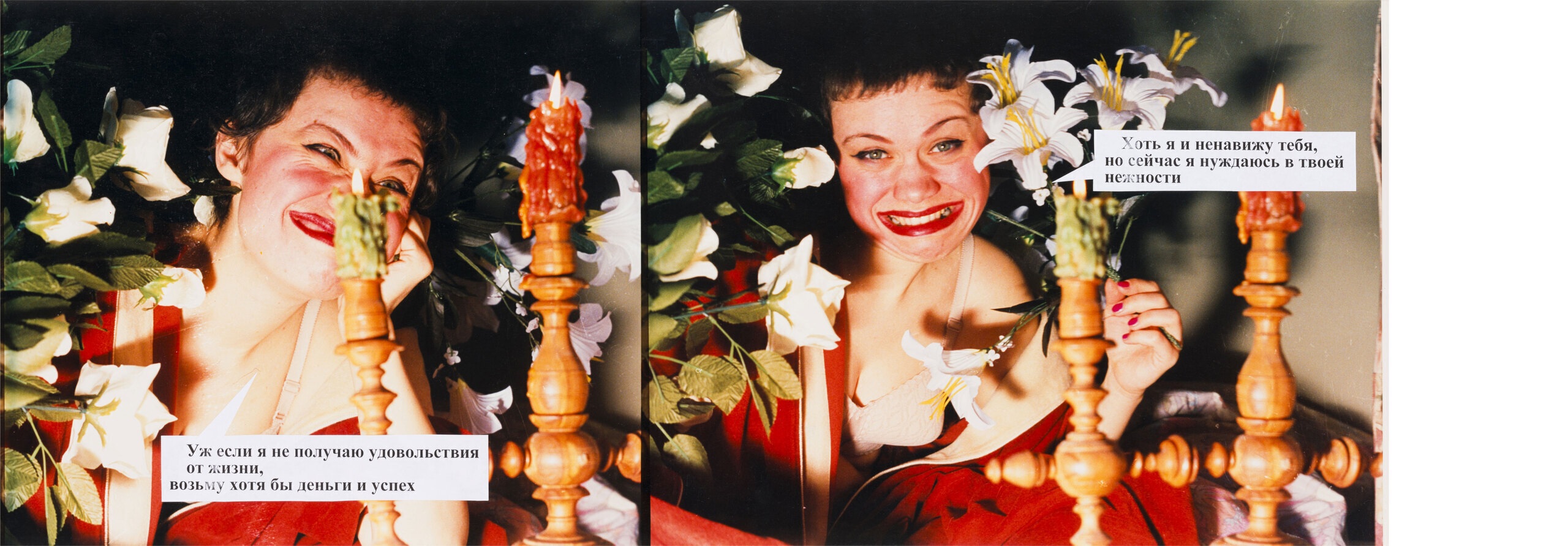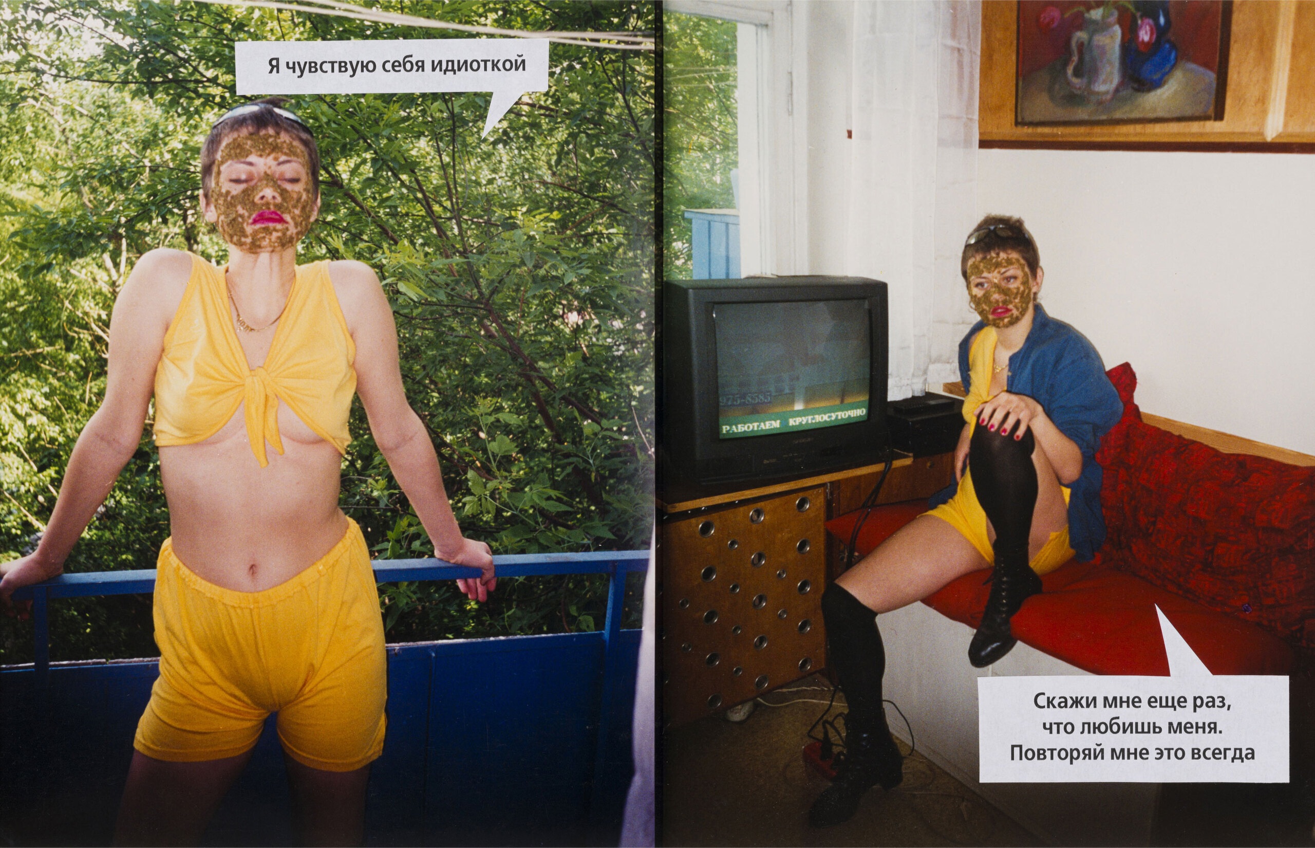 «Как я люблю» (1997) — фотороман из 26 снимков. Этот жанр появился в послевоенной Европе, но наибольшую популярность приобрел в Латинской Америке как адаптация мыльных опер и самостоятельный мелодраматический формат. В Россию он пришел в середине 1990-х годов и на время обрел нишевую популярность: фотороманы можно было найти и в подростковой прессе (Cool Girl), и в субкультурных журналах («Птюч»). Одним из изданий, специализирующихся на фотороманах, была «Страна любви», в которой ежемесячно публиковались адаптированные истории трагических женских судеб, созданные крупнейшим игроком этого рынка — итальянской компанией The Best.