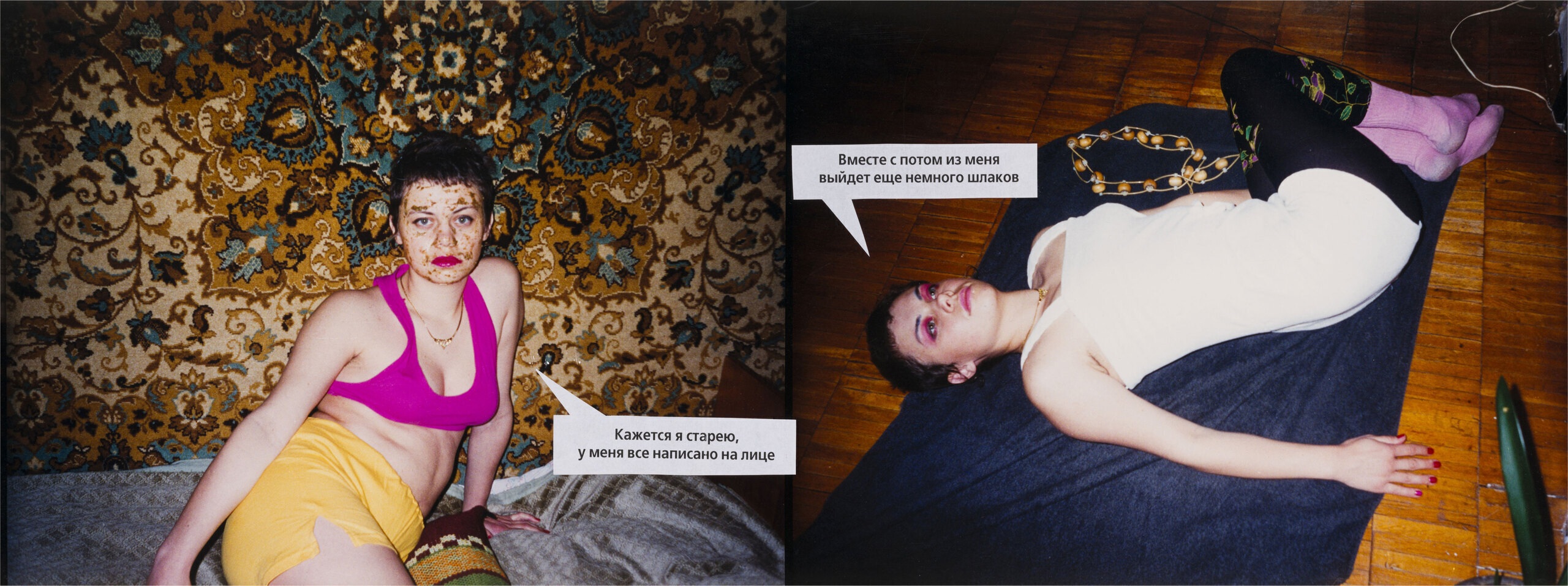 а слова заботы о себе незаметно сливаются с риторикой потребления. Так возникает драматургический контрапункт — между телом, переживающим срыв, и лексиконом, требующим безупречного контроля и улыбки. Горлова показывает, как медиа конструируют фигуру «новой» женщины конца века — одновременно автономной и подотчетной, желанной и уязвимой.