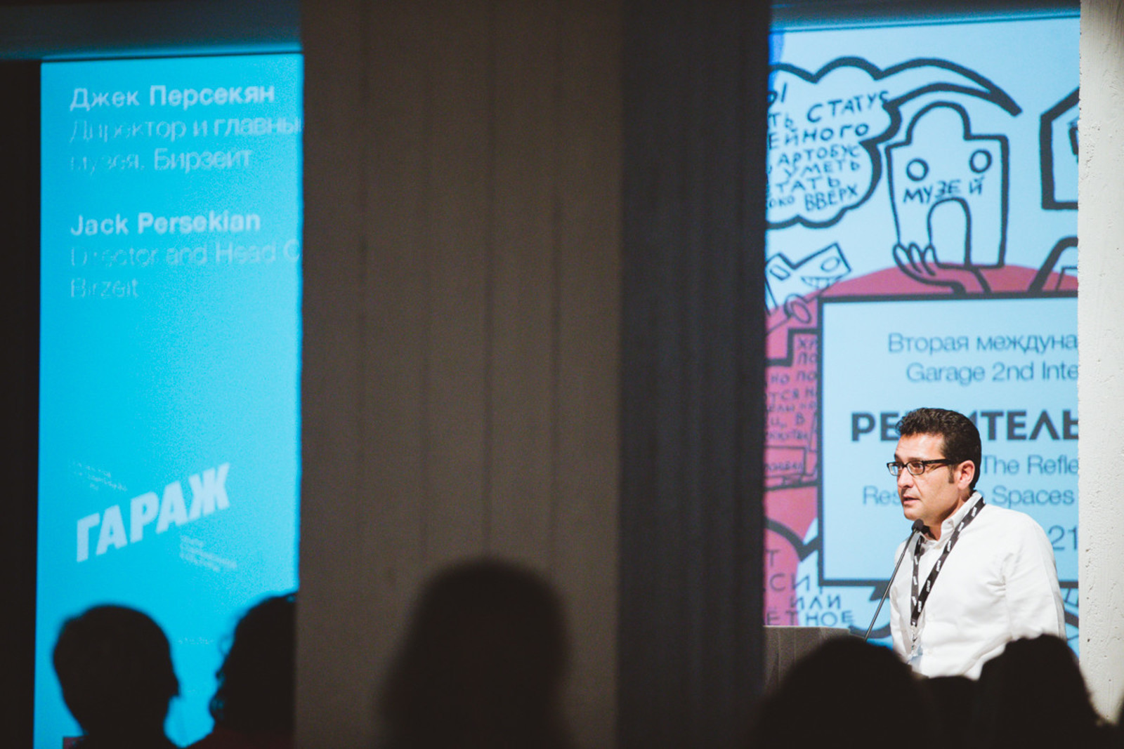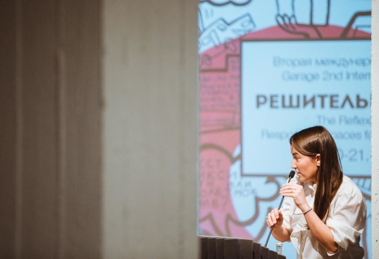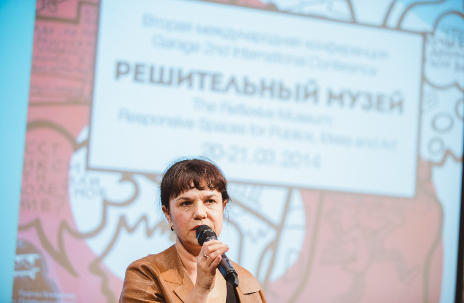 Название конференции на английском языке звучит как The Reflexive Museum: Responsive Spaces for Publics, Ideas, and Art. В силу ряда причин в русском языке слово «музей» по-прежнему связано со своими корнями и часто ассоциируется с однозначной функцией консервирования истории, в связи с чем подобрать эквивалент английским определениям «reflexive» и «responsive» в контексте музейной практики было непросто. Если в европейской и американской традициях музейного дела применительно к музею допустимы употребления слов «успешный», «эффективный», «гибкий», «думающий», то в русском языке сегодня музей больше «влиятельный», чем «дружелюбный», больше «степенный», чем «динамичный» или «реагирующий».
