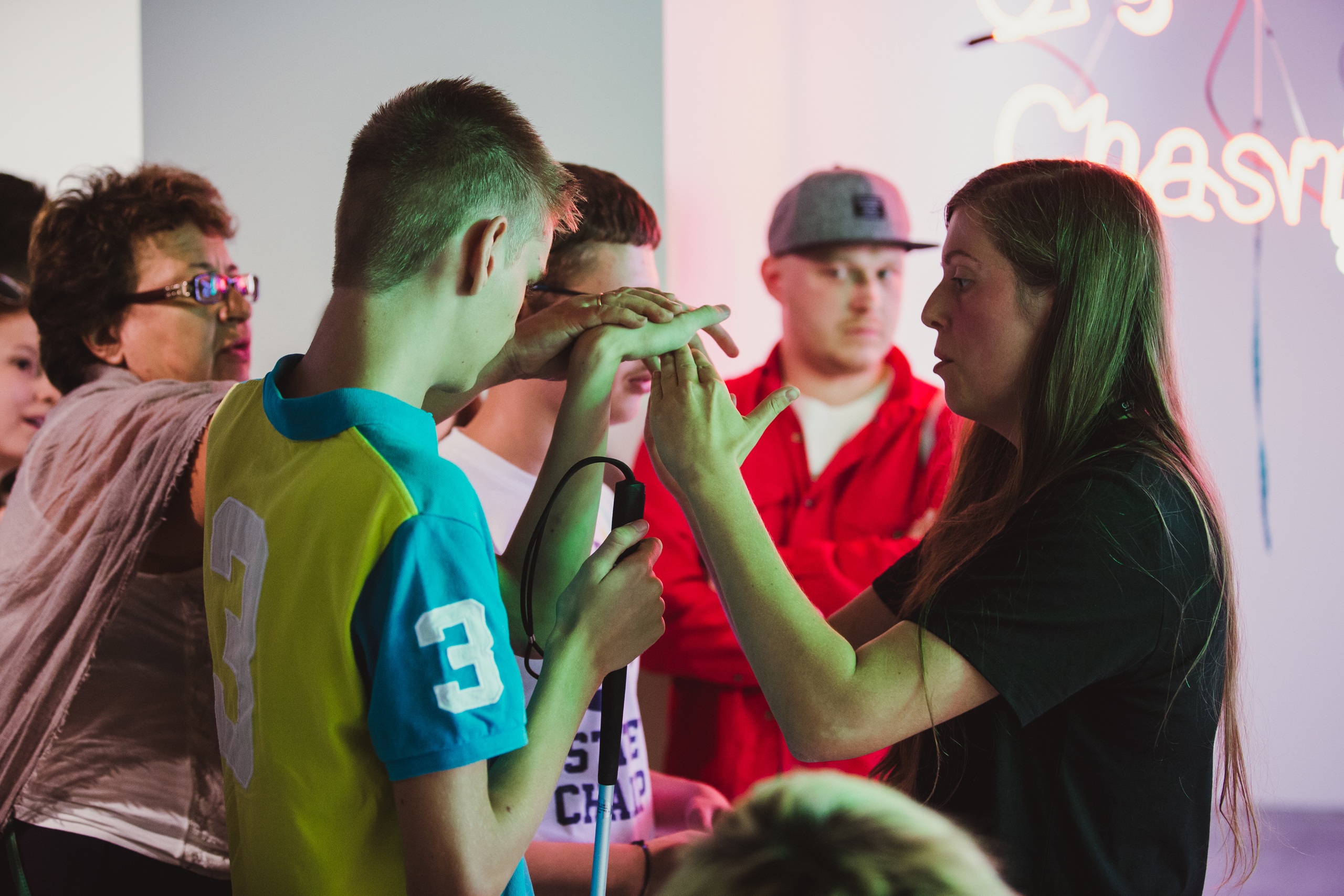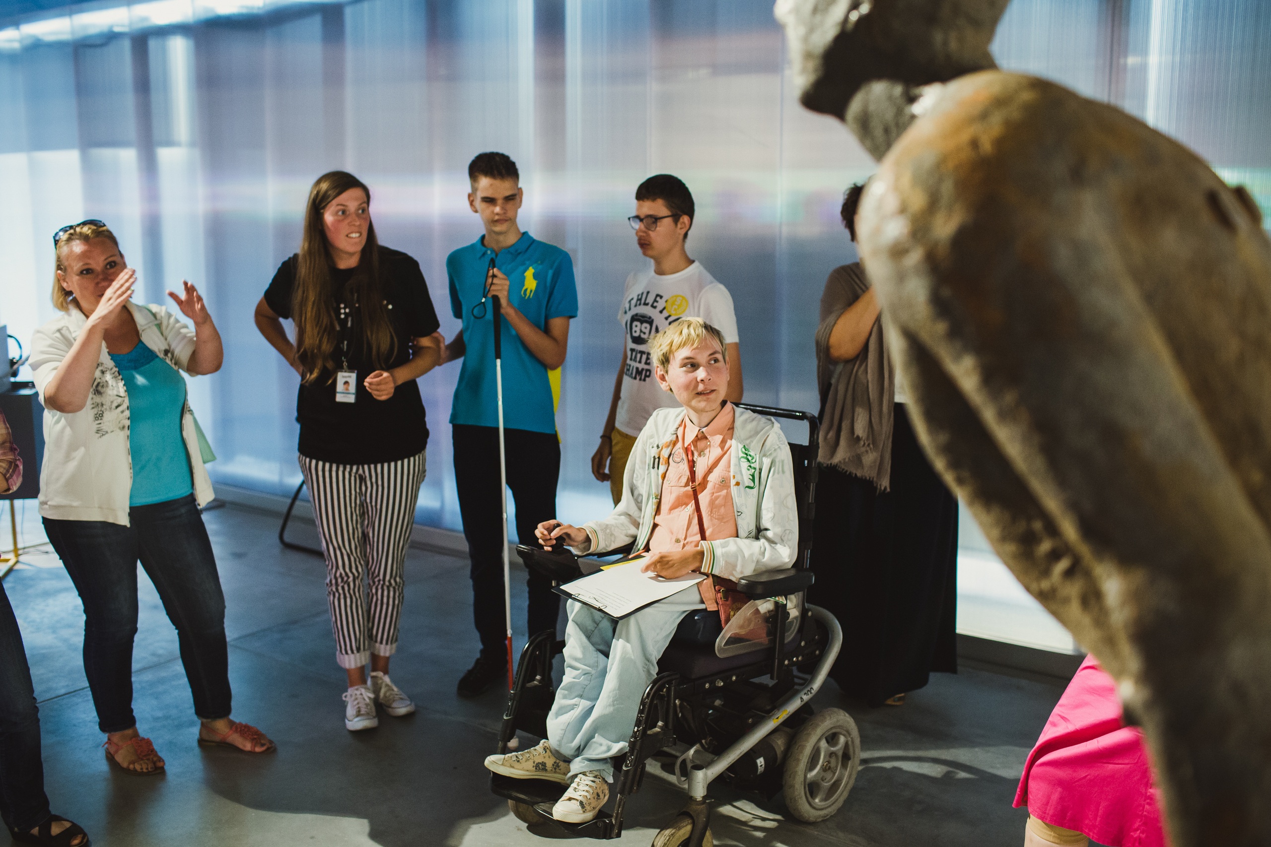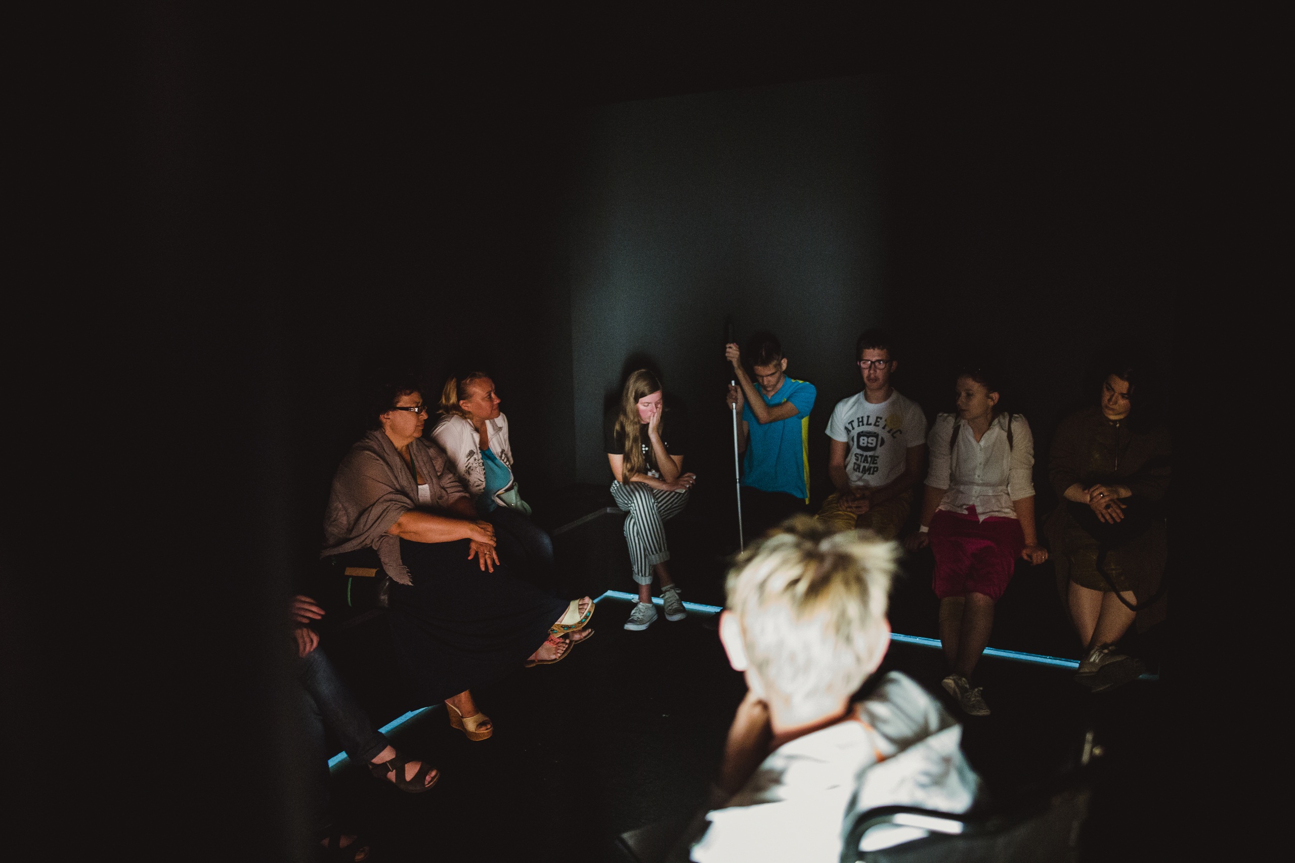 Согласно американскому концептуалисту Джону Балдессари, люди в среднем смотрят на одну картину семь секунд. Участники инклюзивного дискуссионного клуба встречаются дважды в месяц для того, чтобы через тактильные ощущения и вербальные впечатления прочувствовать некоторые из работ выставки «Единомышленники» и действительно рассмотреть каждое произведение.