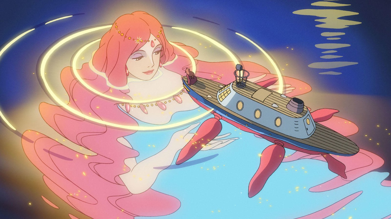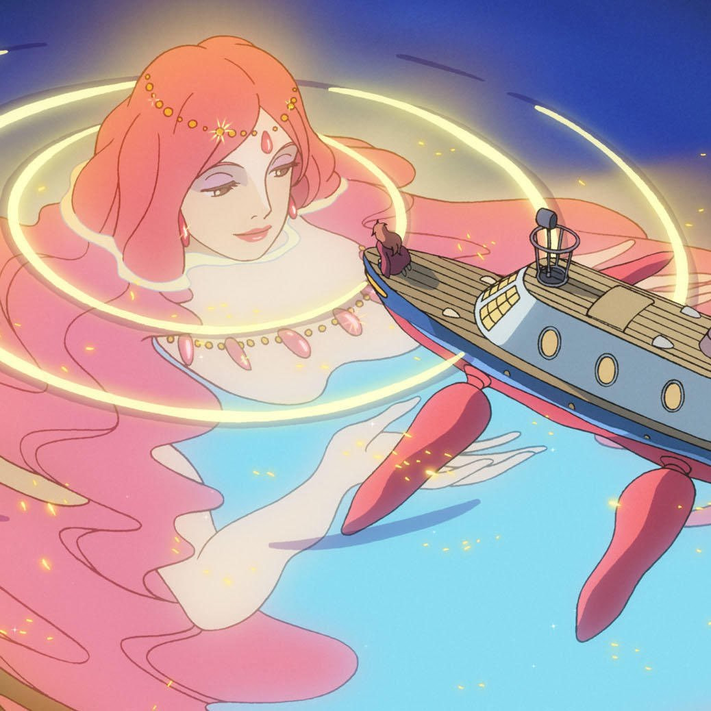 Расколов прибившуюся к берегу банку, пятилетний Сосукэ вызволяет из нее волшебную рыбку, которая моментально исцеляет его порезавшийся палец. Мальчик дает рыбке имя Поньо и клянется оберегать, не зная, что на самом деле в рыбьем обличье скрывается морская принцесса Брунгильда, а ее новообретенное желание стать девочкой повлечет за собой необратимые последствия: цунами и сход Луны с орбиты. Первое за долгое время аниме Хаяо Миядзаки, целиком нарисованное вручную (с рекордными для режиссера 170 000 кадров), было с успехом показано на Венецианском кинофестивале 2008 года и получило премию Японской киноакадемии как лучший анимационный фильм года.