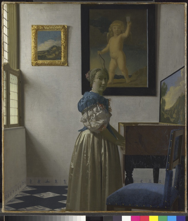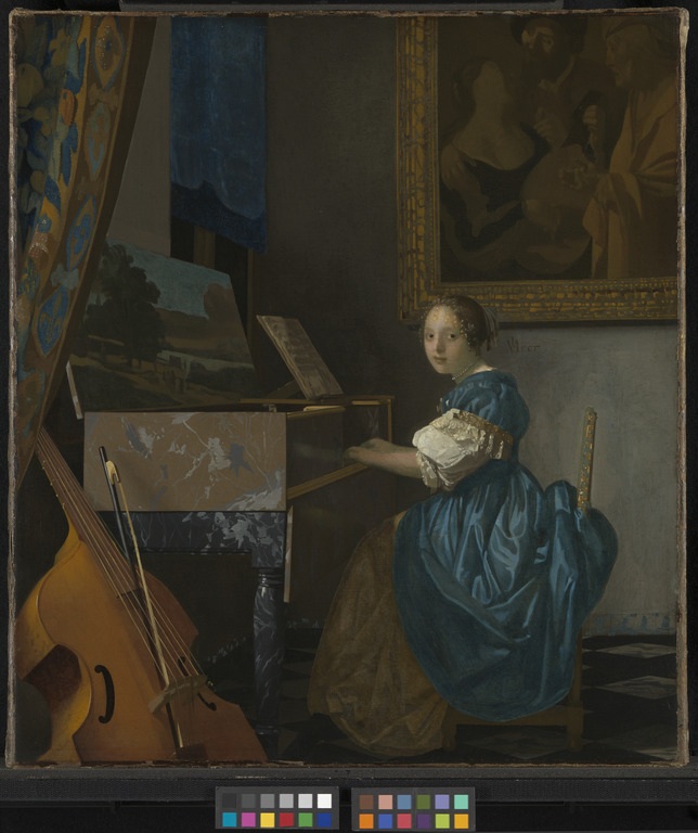 Летом 2013 года в Национальной галерее в Лондоне две дамы с полотен знаменитого голландца Яна Вермеера, «Дама, стоящая у вирджиналя» и «Дама, сидящая за вирджиналем», впервые встретились в рамках одной экспозиции. Загадочный вирджинал — это музыкальный инструмент, разновидность клавесина. Инструменты и иные сопутствующие музицированию предметы играли в творчестве нидерландских живописцев 17-го века не последнюю роль, поскольку с их помощью можно было эффективнее всего намекнуть на утончённость и высокое образование их натурщиков.
