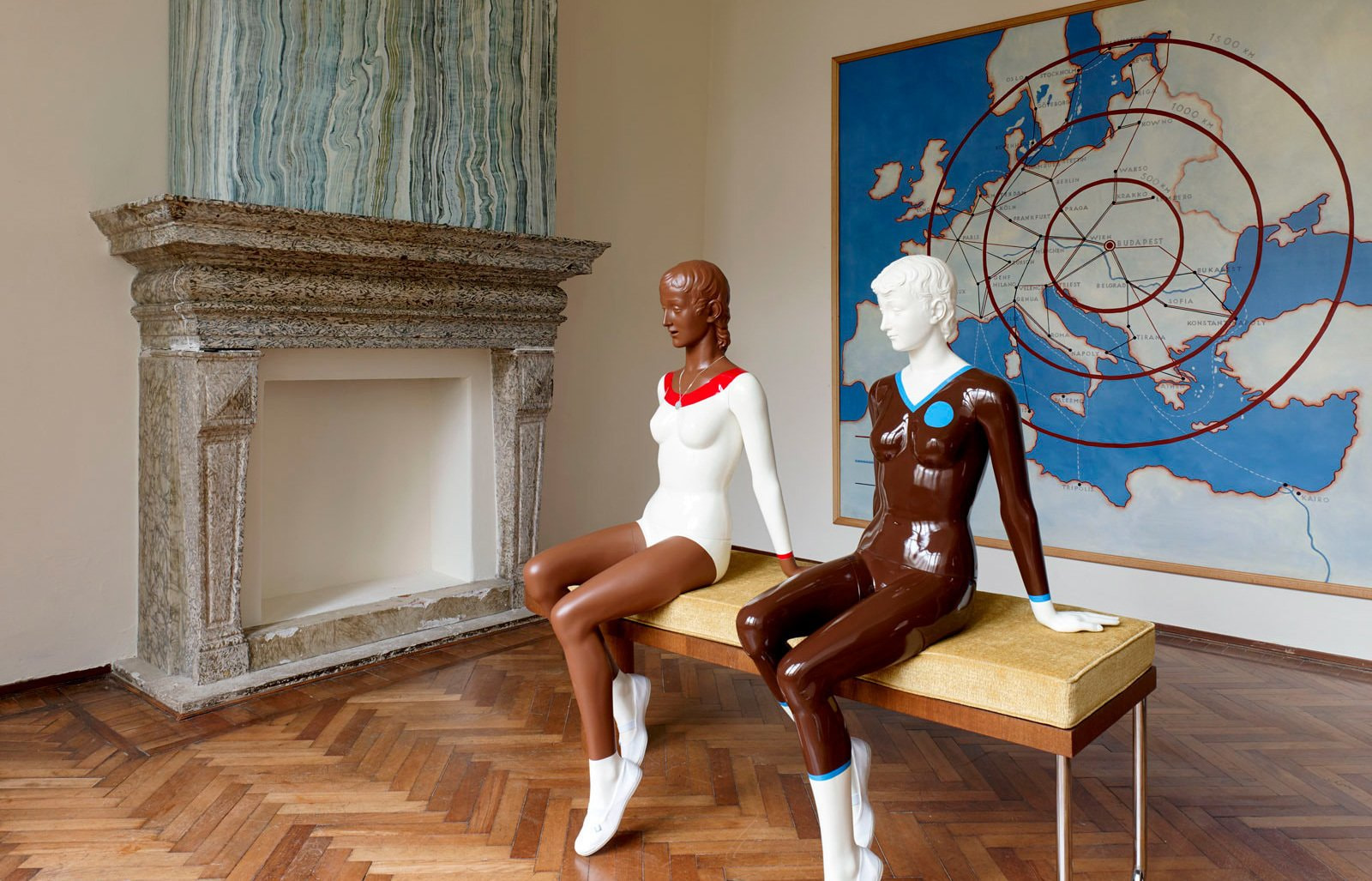 Художники Люси Маккензи и Маркус Прошек совместно с модельером Бекой Липскомб изучают одежду, интерьеры и музейный дизайн 1930–1980-х в центральных городах России: отправными точками «Травертины» стали метро Санкт-Петербурга и Москвы, столичный универмаг ГУМ и музейные технологии, использованные в Российском этнографическом музее и Музее Арктики и Антарктики в Санкт-Петербурге и в Палеонтологическом музее и на Выставке достижений народного хозяйства в Москве.