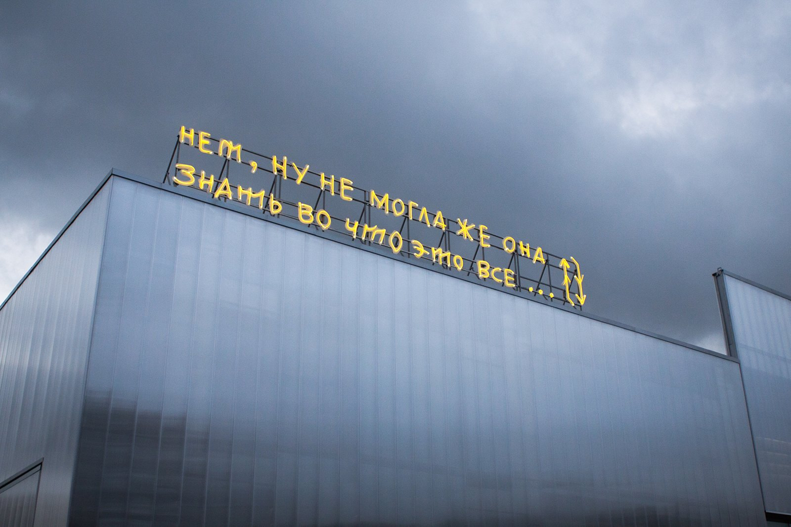 Работа Матросова, выполненная в рамках программы Garage Square Commissions, представляла собой неоновую надпись «Нет, ну не могла же она знать, во что это всё…»: словно выхваченный из чужого разговора текст был взят с картины самого художника 2012 года. В последнее время Матросов работает в подобном постконцептуальном поле, апроприируя собственные произведения прошлых лет, создавая нарочито простые жанровые вещи (пейзажную, портретную, интерьерную живопись) и исследуя формы паблик-арта, как в случае с «Гаражом» и другой получившей массовую известность инсталляцией — «Счастье не за горами», установленной в Перми.