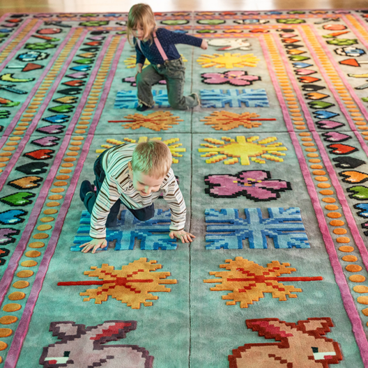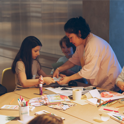 Музей «Гараж» расширяет пространство 0+ и дополняет его игровой зоной для детей и подростков в мезонине, где находится масштабный ковер, созданный по эскизу художницы Кристины Пашковой.